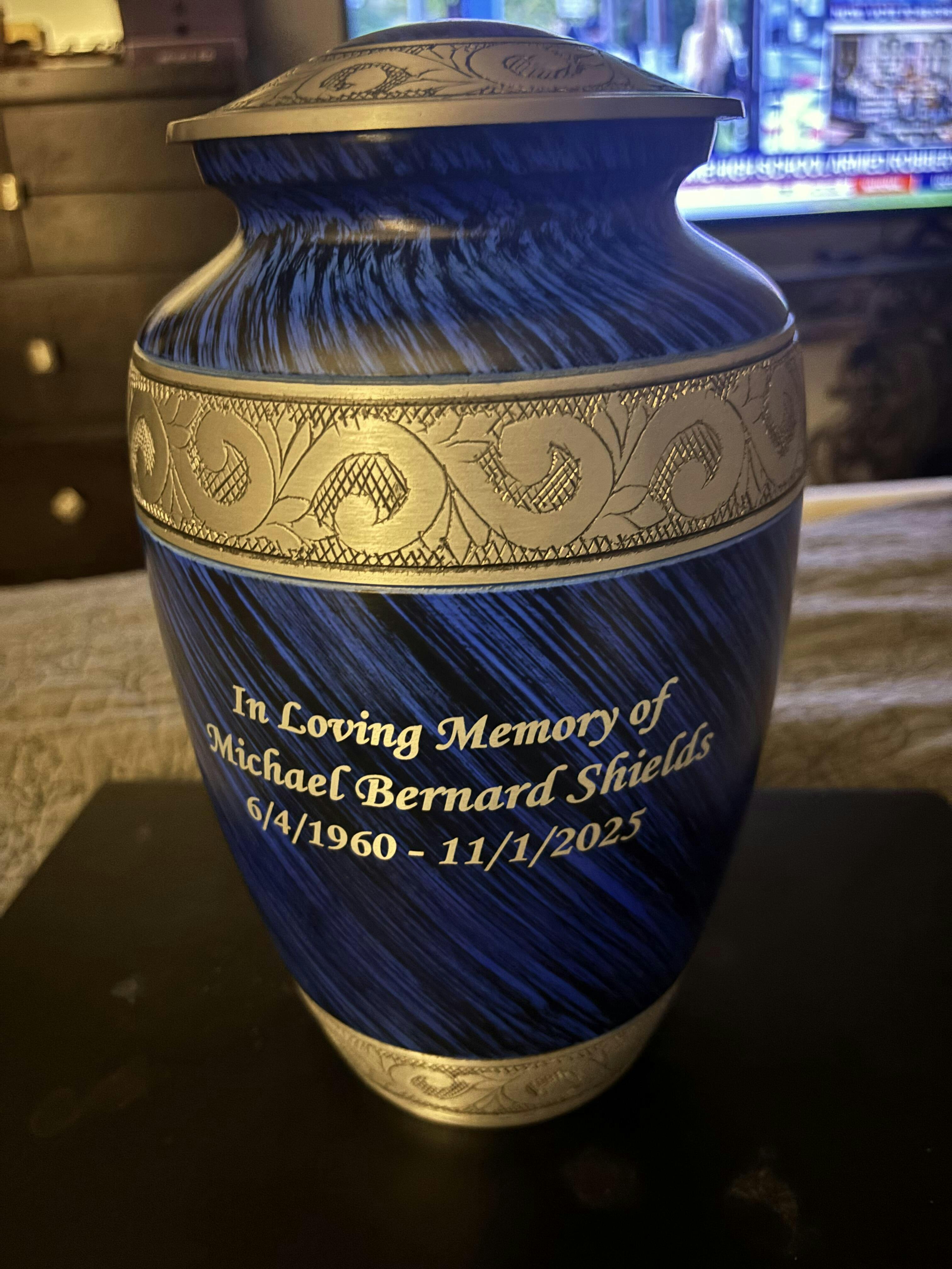 Eternal Blue & Silver Hand-Engraved Cremation Urn